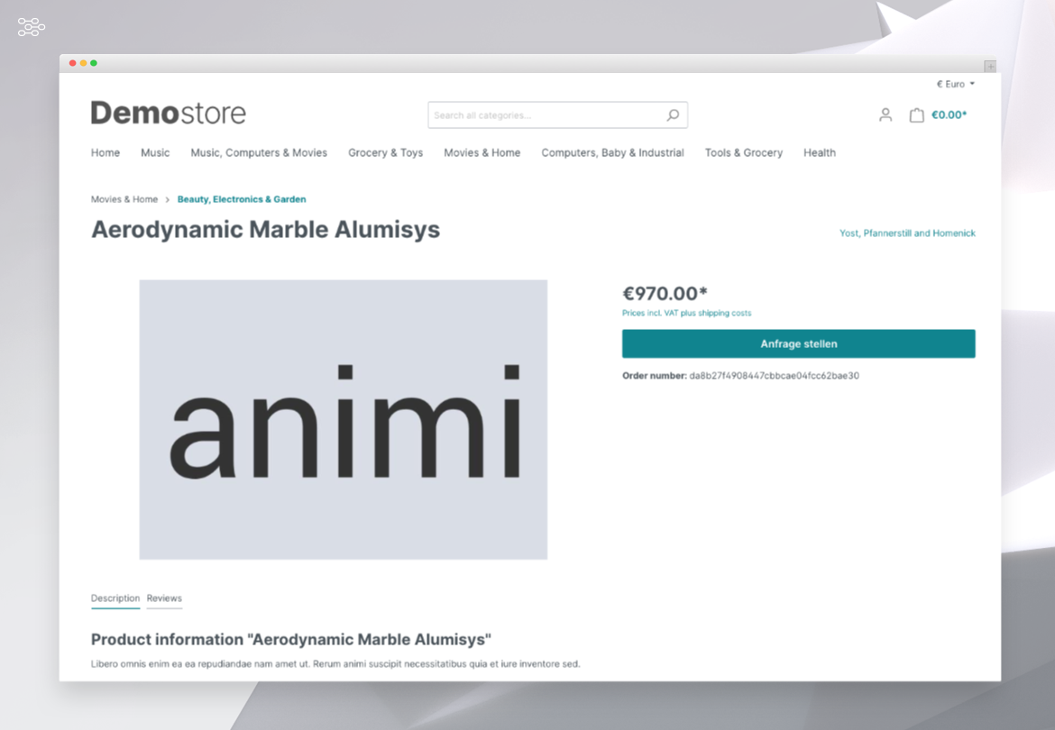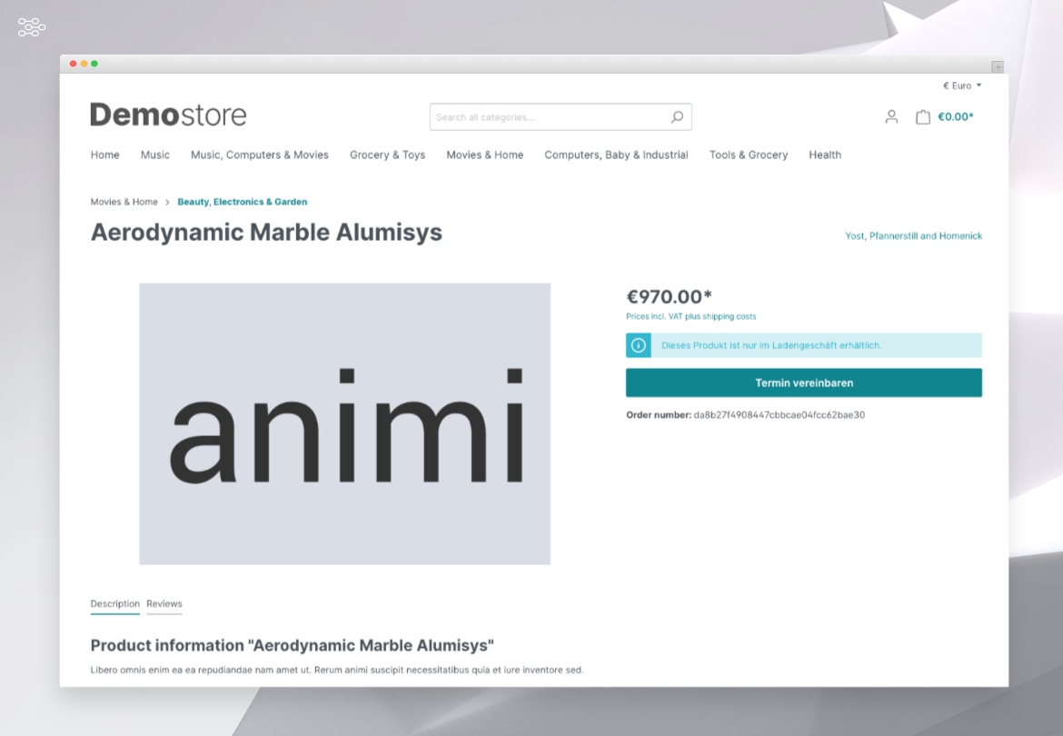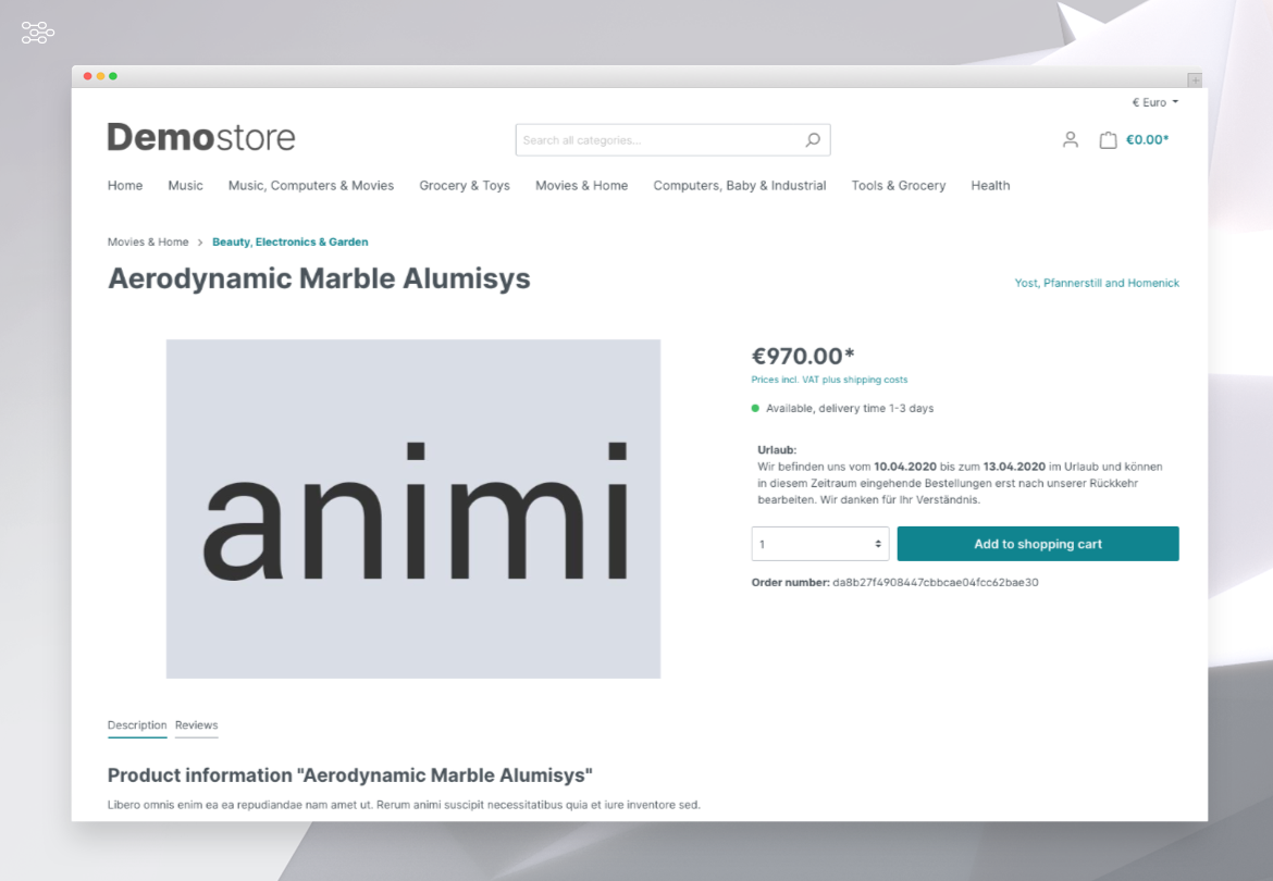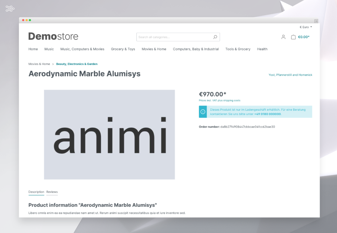 It is also possible to display the details button instead of the add to cart button in the category listing if the add to cart button has been replaced or hidden for the product. In this case, the delivery information text or the quantity selection can also be hidden on the product detail page, just like the input field for entering a product number in the checkout.